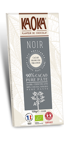 Sans beurre de cacao ajouté, ce chocolat noir 90% est ce que l’on appelle une pure pâte de cacao.