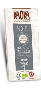 Sans beurre de cacao ajouté, ce chocolat noir 90% est ce que l’on appelle une pure pâte de cacao.